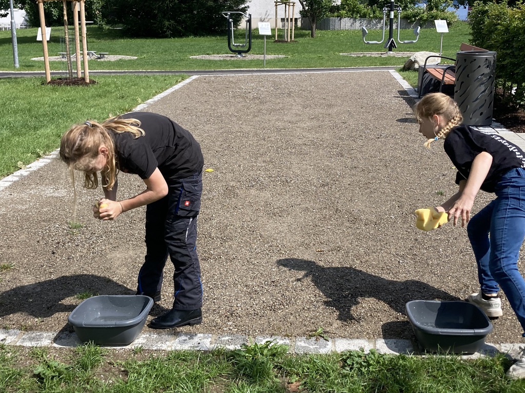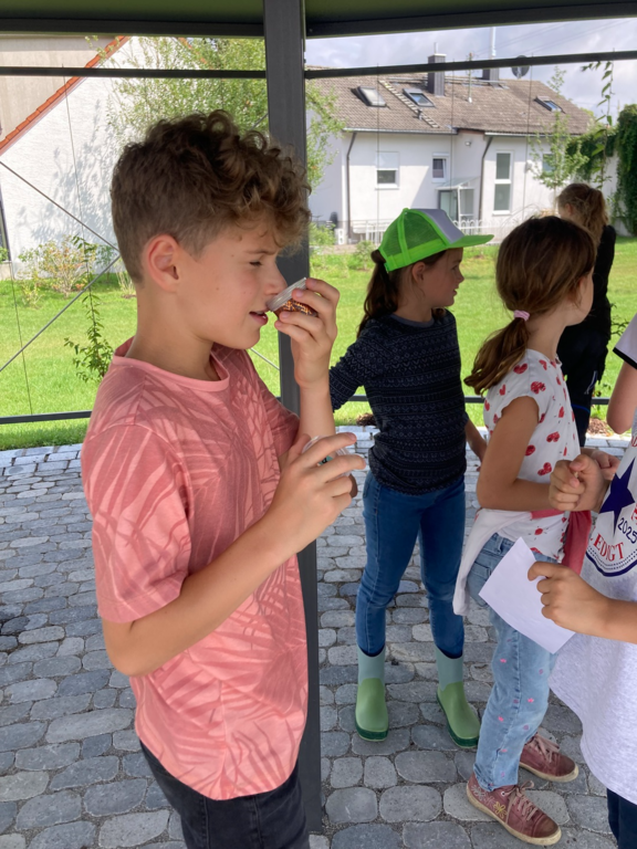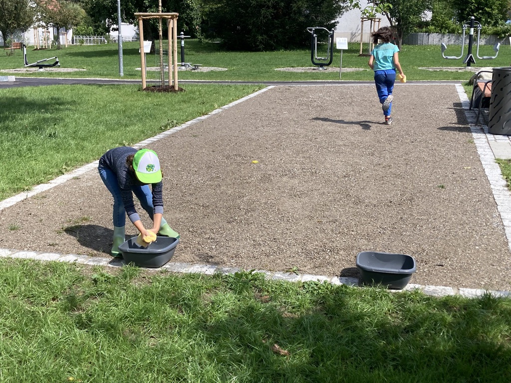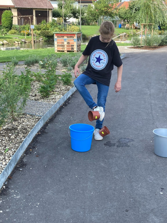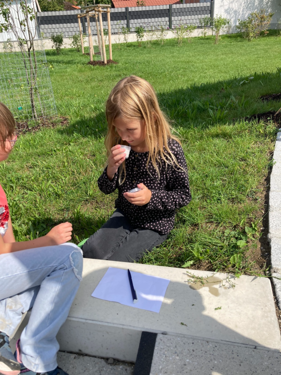 Wir nutzen das sommerliche Wetter für verschiedene Wasserspiele und um zwischendurch wieder ein bisschen zur Ruhe zu kommen haben wir für die Kinder ein Geruchs-Bingo mit verschiedenen heimischen Kräutern vobereitet.