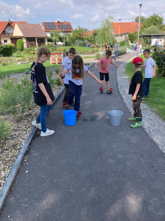 Heute feiern wir unsere 4. Klässler, die uns nach diesem Treffen verlassen und weihen unsererseits den Generationenpark in Wehringen ein.